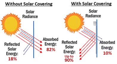 Solar panels absorb the suns rays to create energy. Solar window coverings block or reflect 90% of the suns heat and glare while still allowing you to see out but others to not see in! They attach to your existing window and are easily removed for cleaning. Add value to your home and SAVE MONEY on your energy costs.